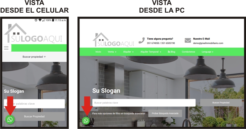 Para recibir las consultas a su WhatsApp y responderlas directamente desde su celular, solo es necesario que tengan su web inmobiliaria desarrollada por Pixel Inmobiliario.