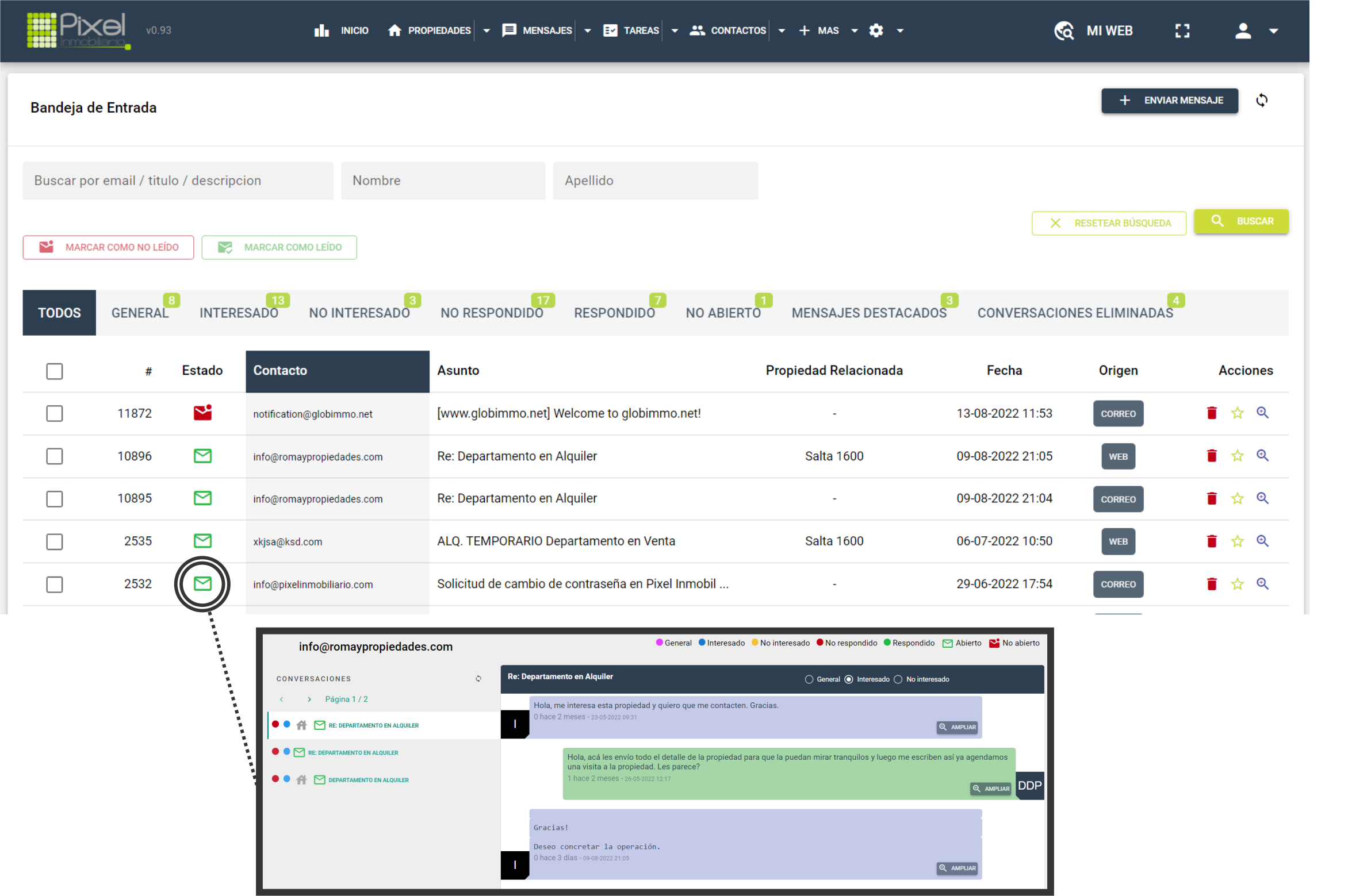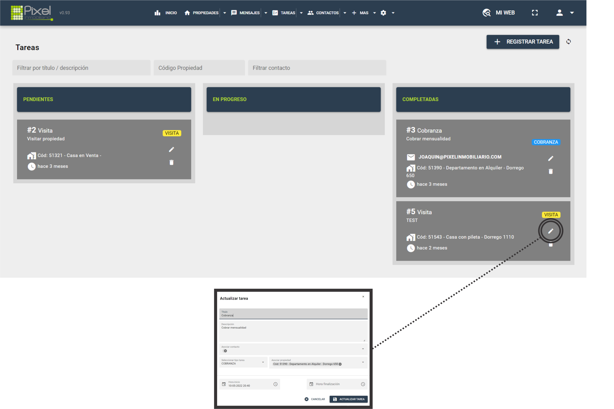 Tenga todas sus tareas sincronizadas con los CONTACTOS, PROPIEDADES Y MENSAJES.